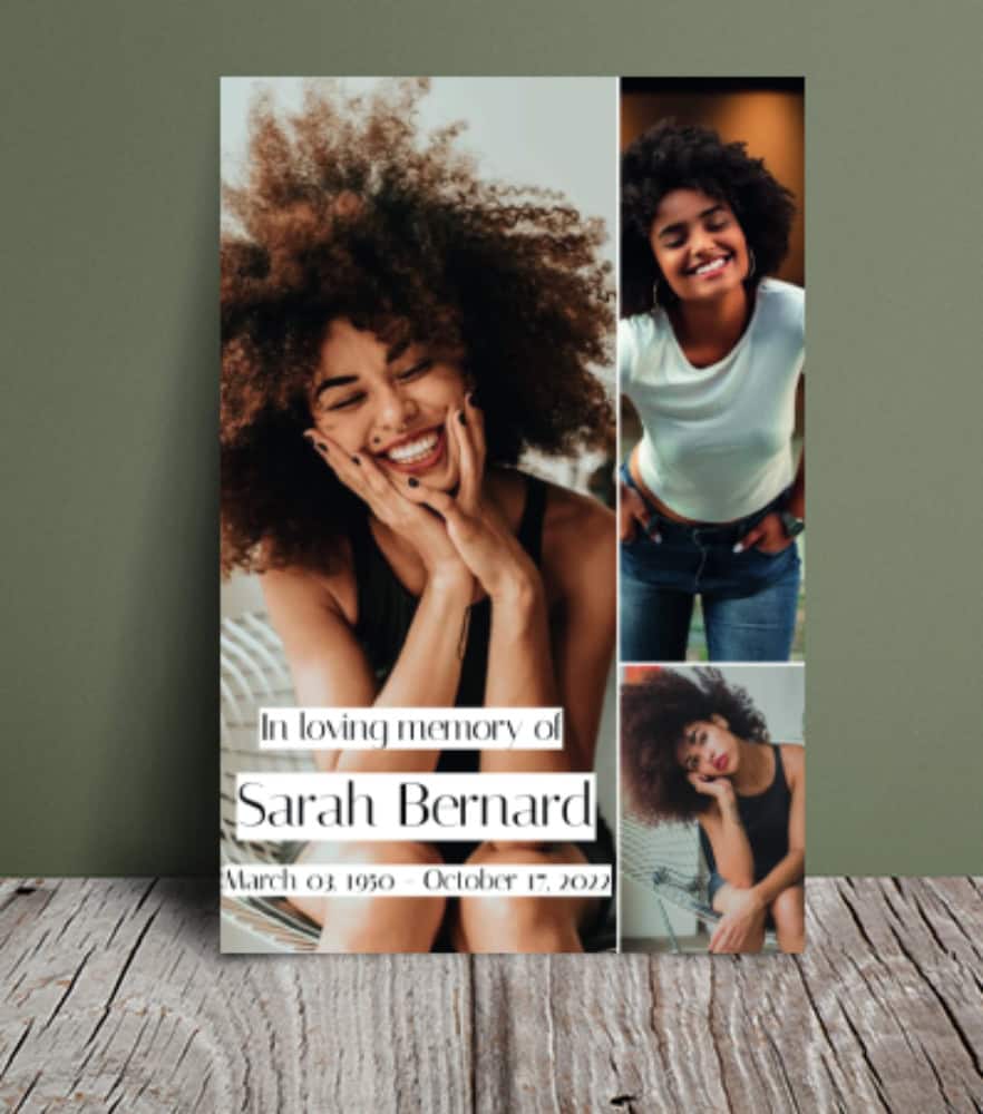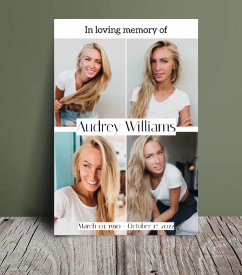 Customise funeral template that works for you. You can also customise the text and font to fit your preferences. Replace the images with your own loved one’s photos and select from 100’s of clip arts and illustrations from our online editor tool.