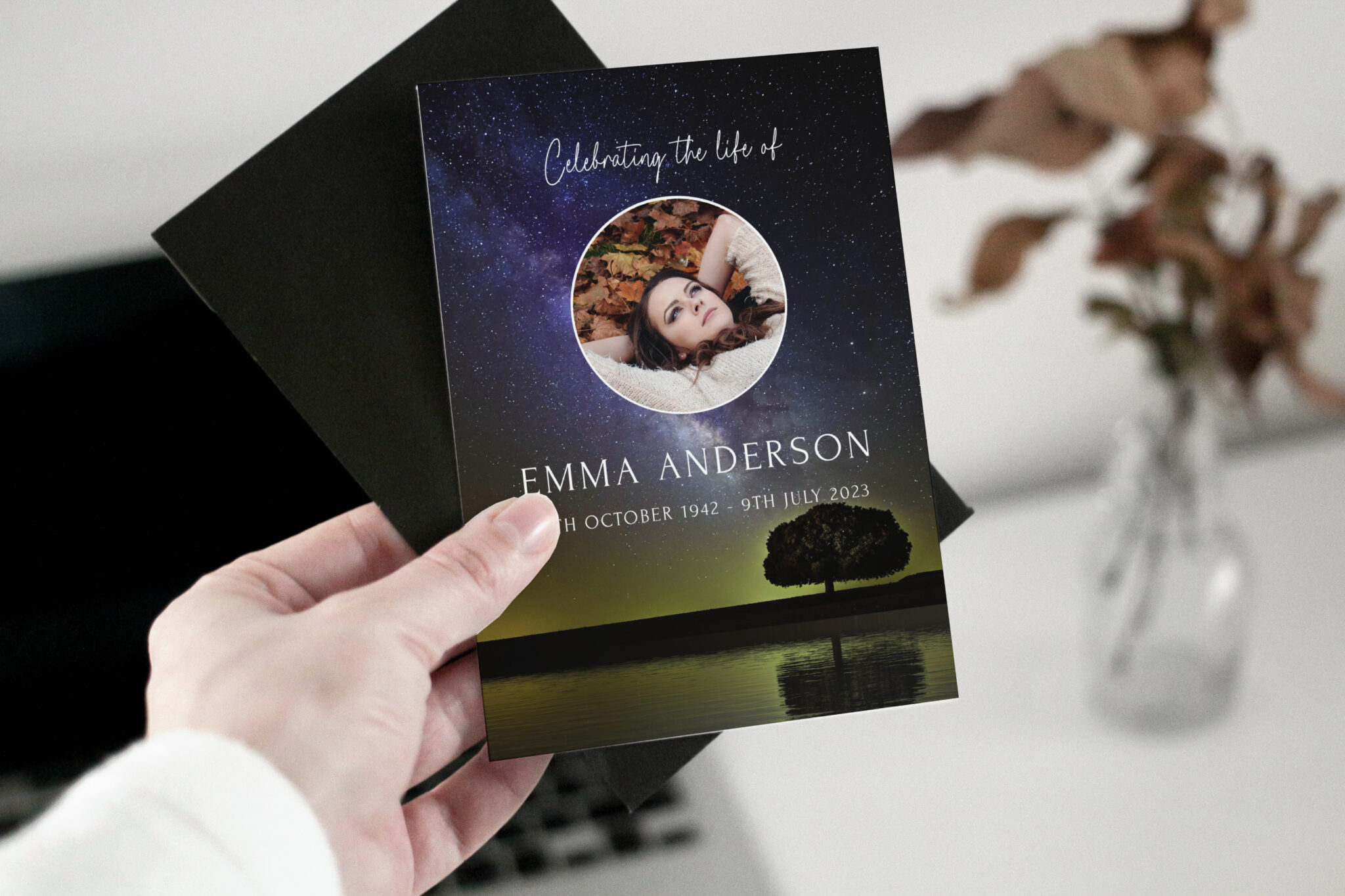 We have over 100 templates for funeral order of service designs to choose from, all of which are intended to help you find the ideal tribute for your loved one. Our simple online editing tool gives you complete creative control, allowing you to personalize your Order of Service with text and photos to your heart’s content. We are deeply committed to our services, with each template carefully crafted by our Esmee and each order carefully proofread before printing.