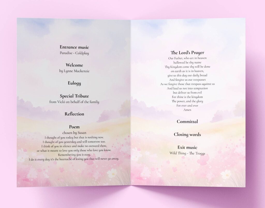 Looking for inspiration? View our library of order of service templates for funeral that can be easily customised to suit your needs.