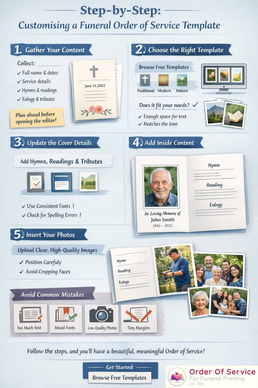 Free funeral order of service templates – easily customisable.