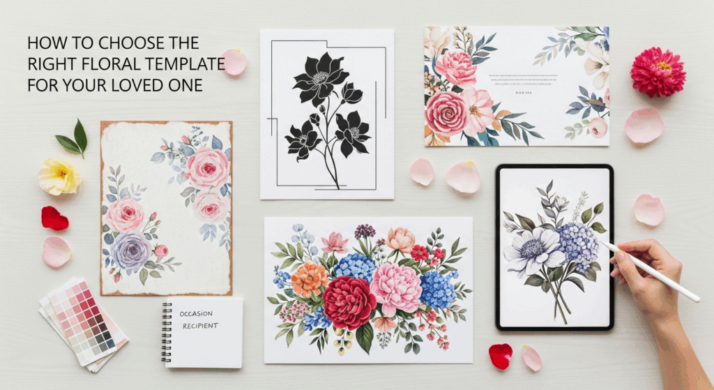 Good floral templates are designed so flowers frame the content rather than sit behind it. Stick to clear fonts and strong contrast, and use your preview to ensure everything is readable. If something looks too busy, you can reduce or move decorative elements in the editor or ask our team for help.