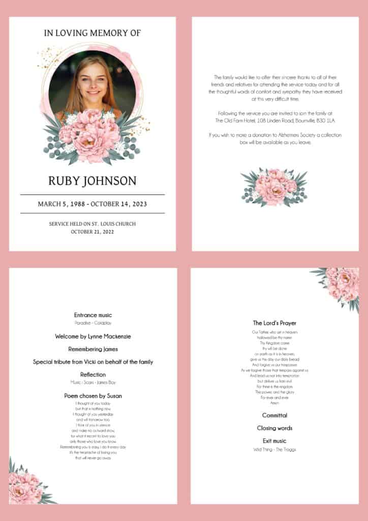 Our templates are fully customisable, so you can change the text, fonts, colours and layout to match your vision. Add photos, change the background, and include personal messages, poems, readings or whatever makes the service feel special and unique to your loved one.