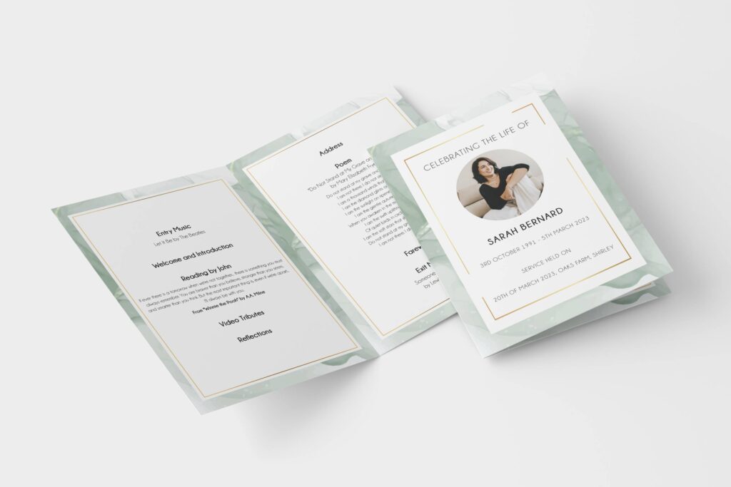 Yes, we have all the examples and ideas for funeral orders of service. You can find inspiration for layouts, wording, and design that suit the style of the service you wish to hold.