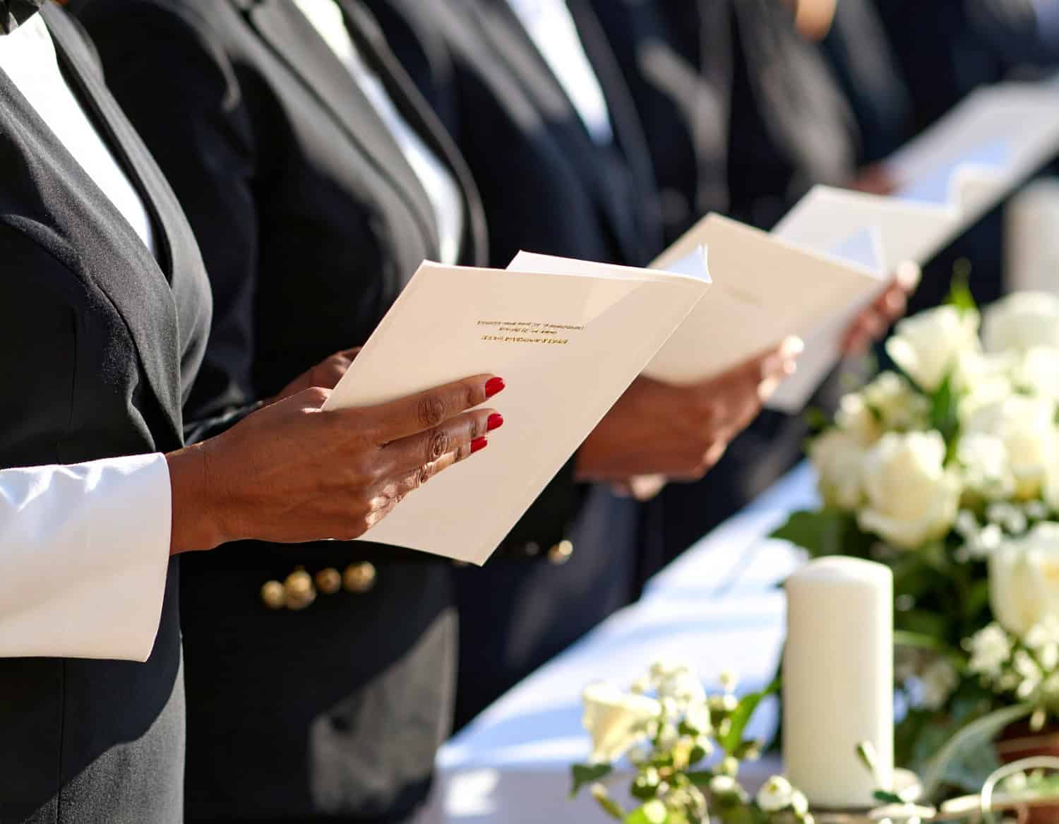 An order of service for funeral is a printed booklet that is provided to both attendees and people who are unable to attend the event and contains the structures and timetable for the ceremony. A typical funeral order of service includes music, hymns, poems, scriptures, readings from obituaries, acknowledgments, tributes, and images.