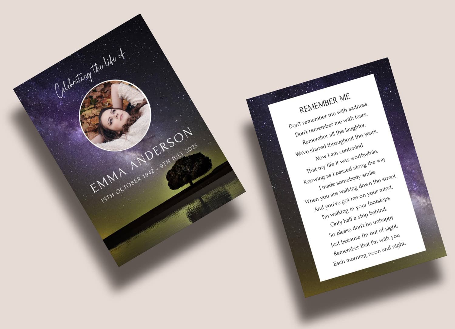 Personalised memorial bookmarks often feature a photo of the deceased, their name, date of birth and date of passing on the front, with a heartfelt message, prayer, or quote on the back. It can be a beautiful funeral favour which attendees can keep and use and connect with the loved one every time they open the book.