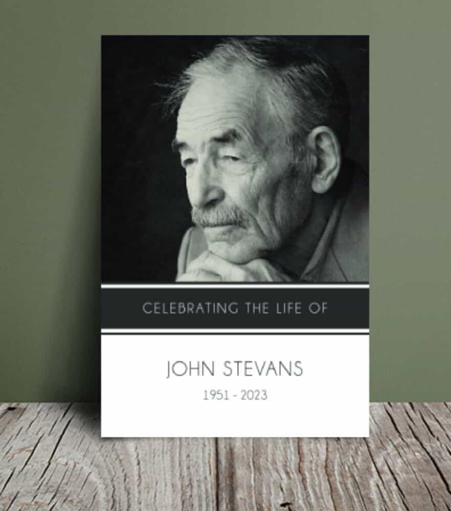 The "Modern Funeral Order of Service 065" template is a sleek and contemporary way to remember someone who has passed away. The cover has a modern and stylish design, with straight lines and rectangle in shades of grey and black. Inside, there are pages where you can fill different parts of the funeral service, like the order of service, ceremony, readings, eulogy, hymns, and closing remarks. You can also customize it by adding your own photos, text, and quotes that remind you of the person. This template is a sophisticated and elegant way to create a keepsake that honours and celebrates the life of a loved one in a modern and stylish way. This main feature of this template is that the focus is mainly your loved one