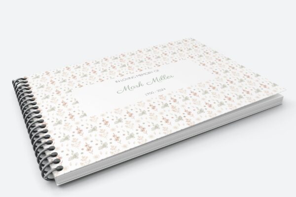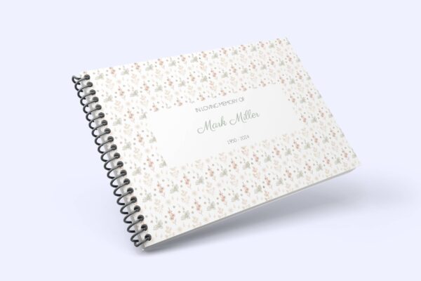 Create a timeless tribute to your loved one with this customisable funeral condolence guest book. The front cover showcases elegant aesthetic flowers and the back can feature a meaningful quote or personalised message. Guests attending the funeral service can share their condolences and cherished memories within its pages.