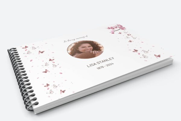 Whether used as a funeral guest book, memorial guest book, or a special memory book for a celebration of life, this design offers a beautiful way to honour and remember your loved one.