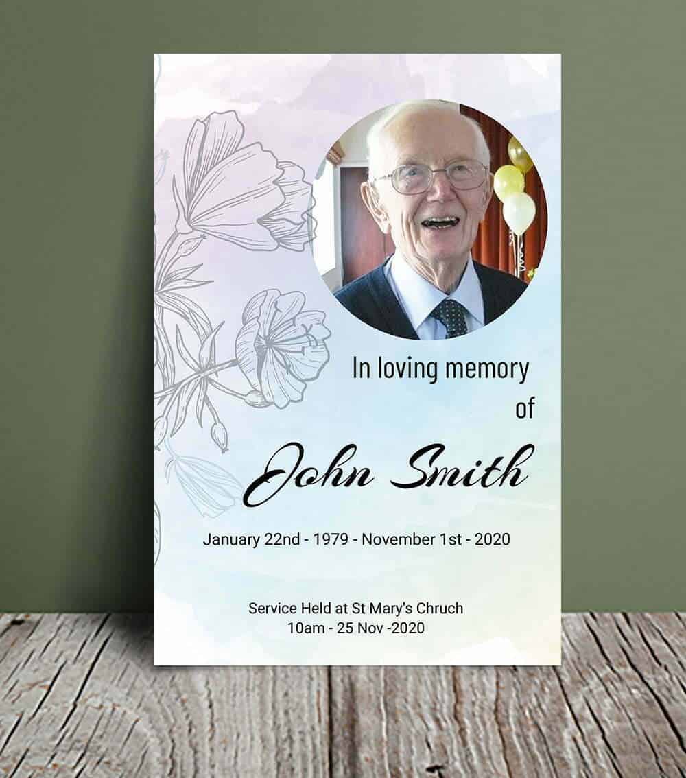 The front design features a light background in multiple colours and a single colour floral illustration, which represents a sense of vibrant and dynamic. This template can be easily customized with your own photos, text, and details to create a unique keepsake for your family and friends. The light colourful background and the floral illustration shows a sense of energy and vitality in the service.