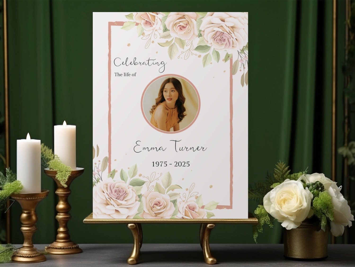 Whether used as a memory board for a funeral, a photo memorial board, or a photo poster for a celebration of life, this design creates a stunning focal point for guests to reflect and remember.