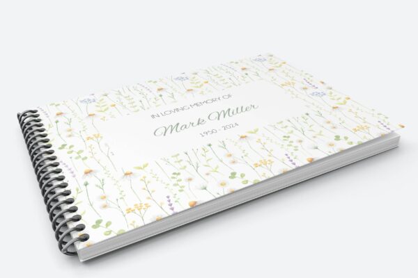 Create a timeless tribute to your loved one with this customisable funeral condolence guest book. The front cover showcases elegant aesthetic flowers and the back can feature a meaningful quote or personalised message. Guests attending the funeral service can share their condolences and cherished memories within its pages.