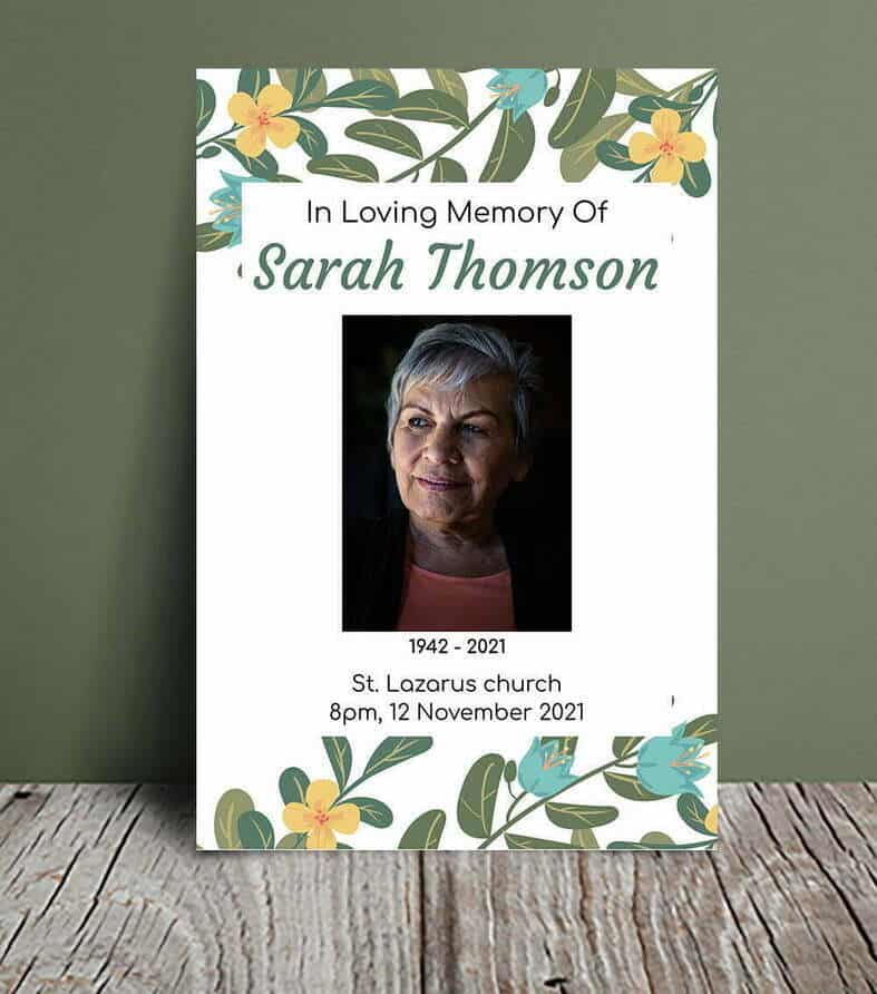 The Floral Funeral Order of Service template (009) is a lovely design that may be used to honour a loved one's memory. It has a floral design on the front that represents life, love, and beauty. The design is editable and can be customized with photographs, text, service details, and personal information about the deceased. The text is beautifully positioned within the flowery pattern, providing a one-of-a-kind and eye-catching layout.