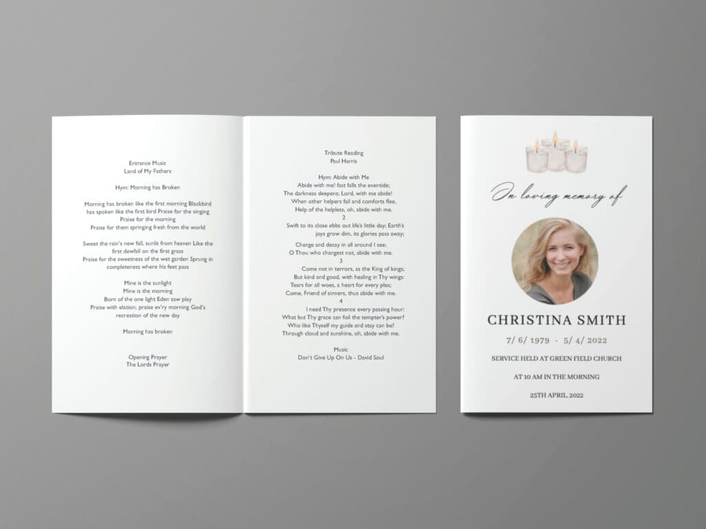 funeral order of service, which includes information about the readings, music, prayers, and other aspects that will be included in the ceremony.