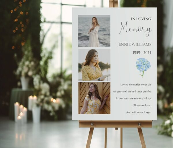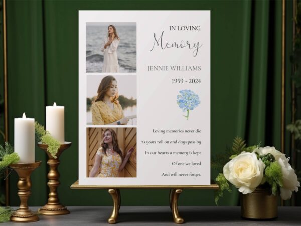 Whether used as a memory board for a funeral, a photo memorial board, or a photo poster for a celebration of life, this design creates a stunning focal point for guests to reflect and remember.