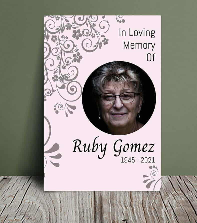 Funeral order of service with swirls (003) features a very simple design featuring swirls, and the font that is being used in this design is very simple, and it goes really well with the floral swirls. The design is easily customizable, so feel free to add your own text and pictures. The swirling theme adds a touch of elegance and beauty to the service that everyone in attendance will appreciate.