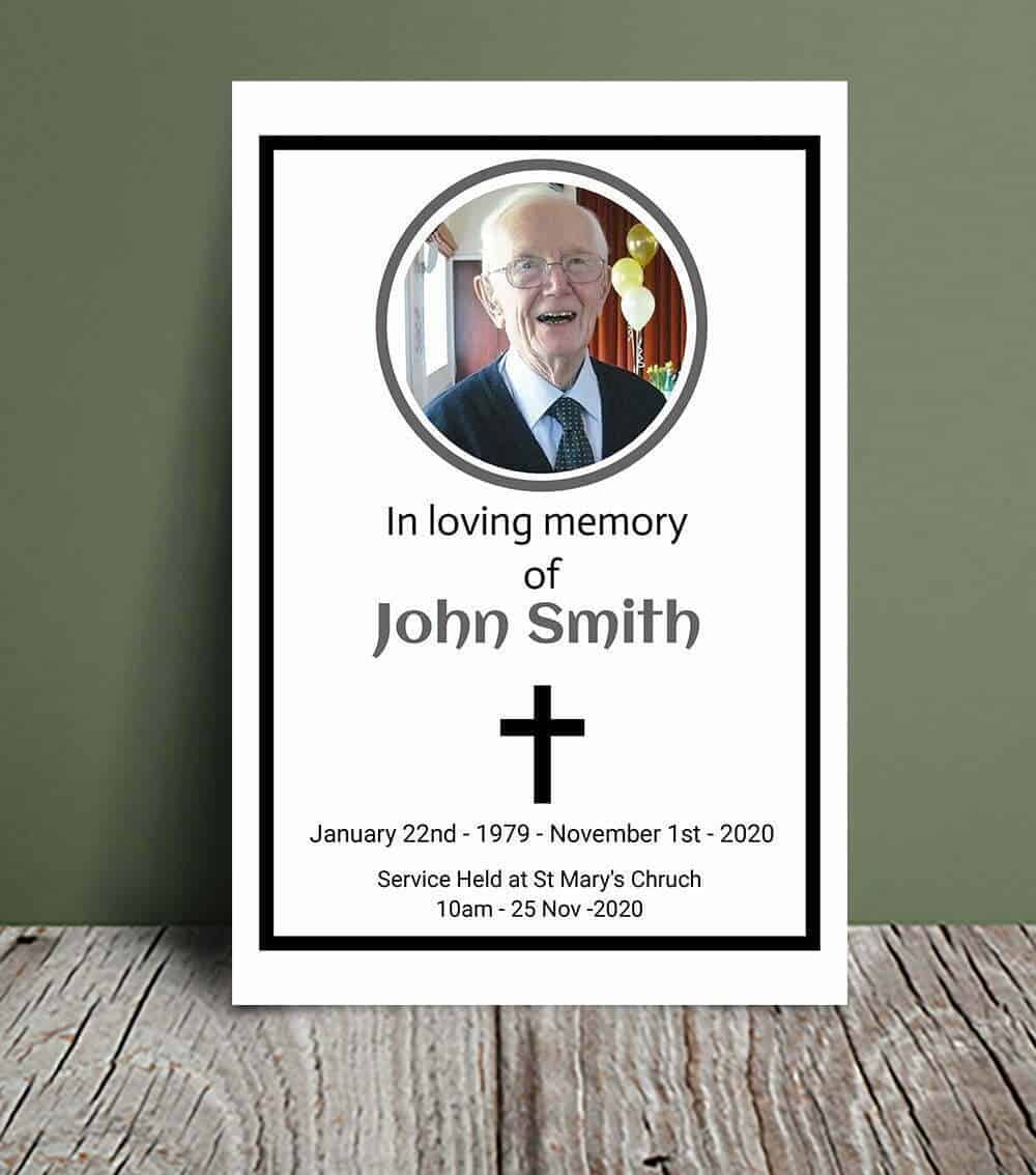 The Holy Cross Funeral Order of Service template (023) is a unique way to commemorate the death of a loved one. The Holy Cross, a traditional Christian symbol of faith and spiritual guidance, is featured on the front cover. It adds comfort and spiritual guidance to the service, making it a meaningful way to remember and honour your loved one's faith. Personalize the template with your own photos, words, and information using our easy-to-use design tool.