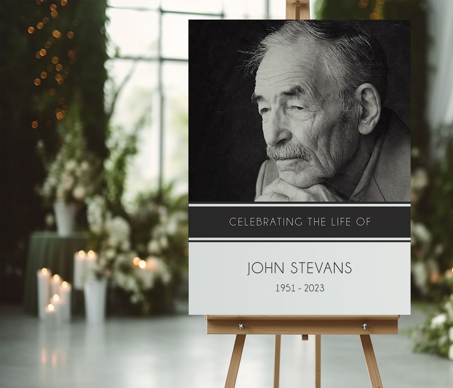 Whether used as a memory board for a funeral, a photo memorial board, or a photo poster for a celebration of life, this design creates a stunning focal point for guests to reflect and remember.