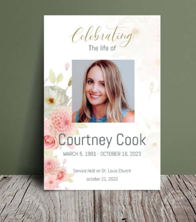 The "Pink Carnations and White Roses Order of Service for Funeral 071" template offers a tender and poignant way to commemorate the life of a loved one who has passed away. The cover design beautifully combines the delicate charm of pink carnations and the timeless elegance of white roses. The pink carnations symbolize remembrance and affection, while the white roses represent purity, reverence, and the eternal love shared with the departed. You can easily personalize this design and fill the inside pages with the order of events for the funeral service. From the sequence of proceedings and ceremony details to readings, eulogies, hymns, and concluding remarks, each element can be included to reflect the unique journey and essence of the person being honoured. The template provides the opportunity to incorporate cherished photographs, heartfelt messages, and meaningful quotes that further pay tribute to their life and legacy.