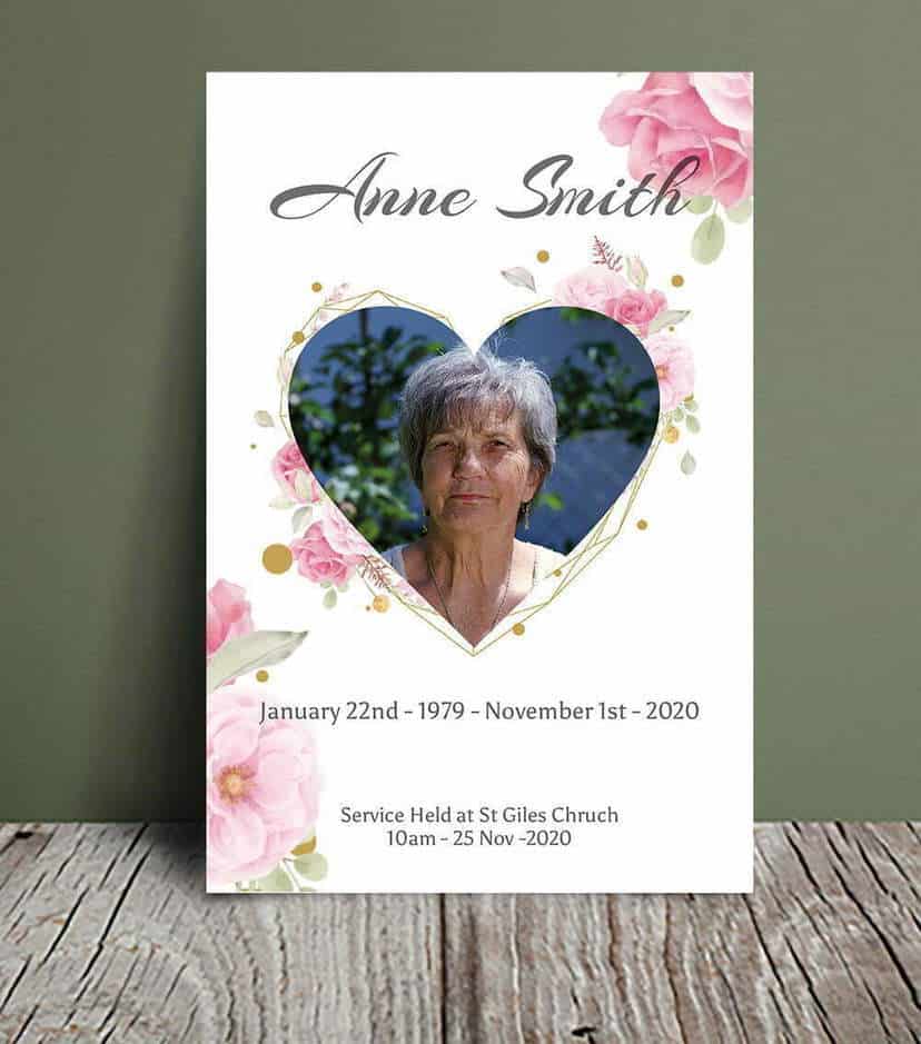 The front design features a pink floral illustration on a white background, which represents love and peace. The white background adds a sense of purity and serenity to the design. You can use this template in any type of funeral service, from modern to traditional. This template is really easy to customize, so just add your own text and photos, and it will be print ready.