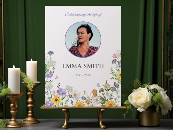 Honour your loved one’s life with “Rustic summer flowers funeral memory board” a beautifully designed tribute perfect for any funeral or celebration of life. This personalised memorial board features a rustic arrangement of vibrant summer flowers, symbolizing warmth, beauty, and the enduring spirit of life.
