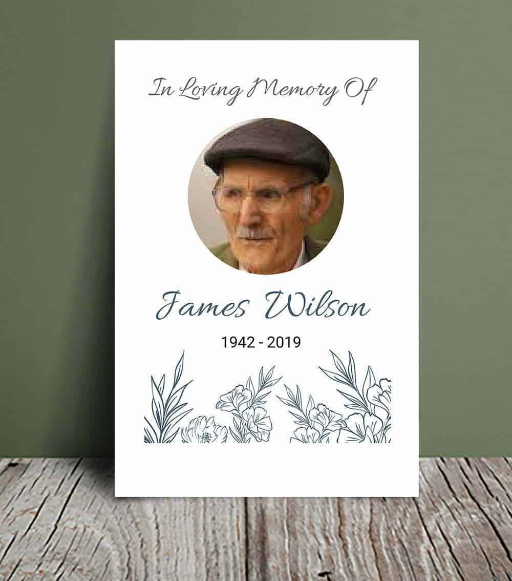 This template is a minimalist yet elegant way to honour the memory of a loved one. It is a fitting choice for a funeral or memorial service. This template is editable, allowing you to make changes and adjustments to the design, making it easy to create a special keepsake for your family and friends to remember the cherished life of your loved one. The floral outline theme provides a special touch of beauty that will be greatly appreciated by all those in attendance. It's a great choice for a farewell service that wants to convey a sense of simplicity and elegance while still paying tribute to the beauty of nature.