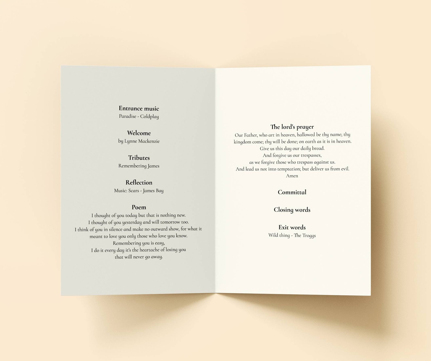This funeral program template offers customization options, enabling you to seamlessly integrate personal elements. Whether it's cherished photographs, heartfelt text, or meaningful quotes, this feature empowers you to create a truly distinctive and deeply heartfelt tribute. Through this capability for customization, you can craft a memorial service that authentically reflects the unique qualities and cherished memories associated with the departed individual.