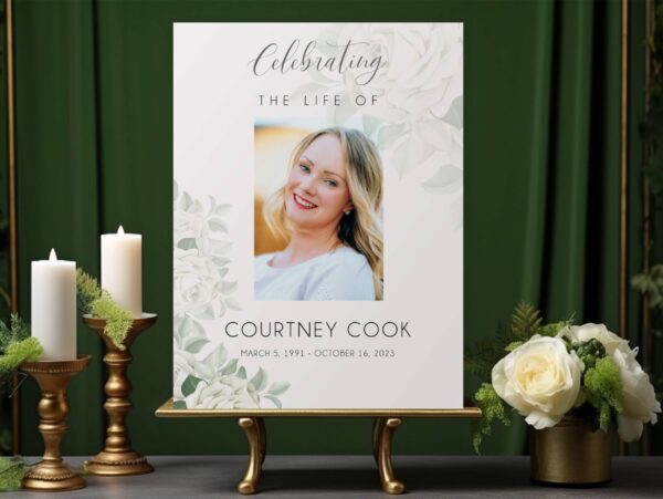 Whether used as a memory board for a funeral, a photo memorial board, or a photo poster for a celebration of life, this design creates a stunning focal point for guests to reflect and remember.