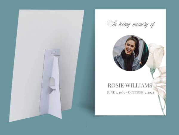 Honour your loved one’s life with the White Rose Funeral Memorial Sign Board, a beautifully designed tribute perfect for any funeral or celebration of life. This personalised memorial board features a serene white rose theme, offering a gentle, heartfelt way to showcase cherished memories and photographs.