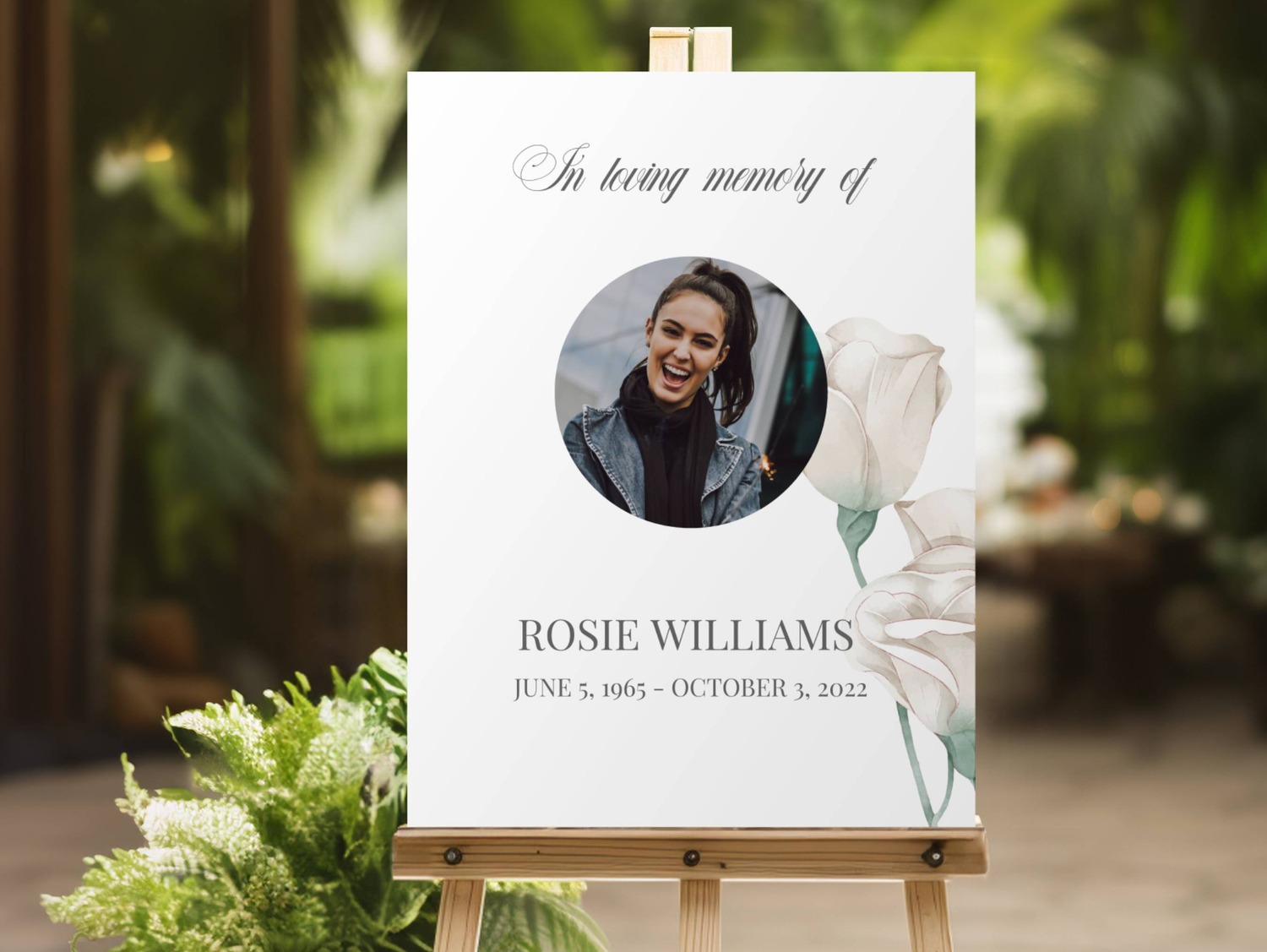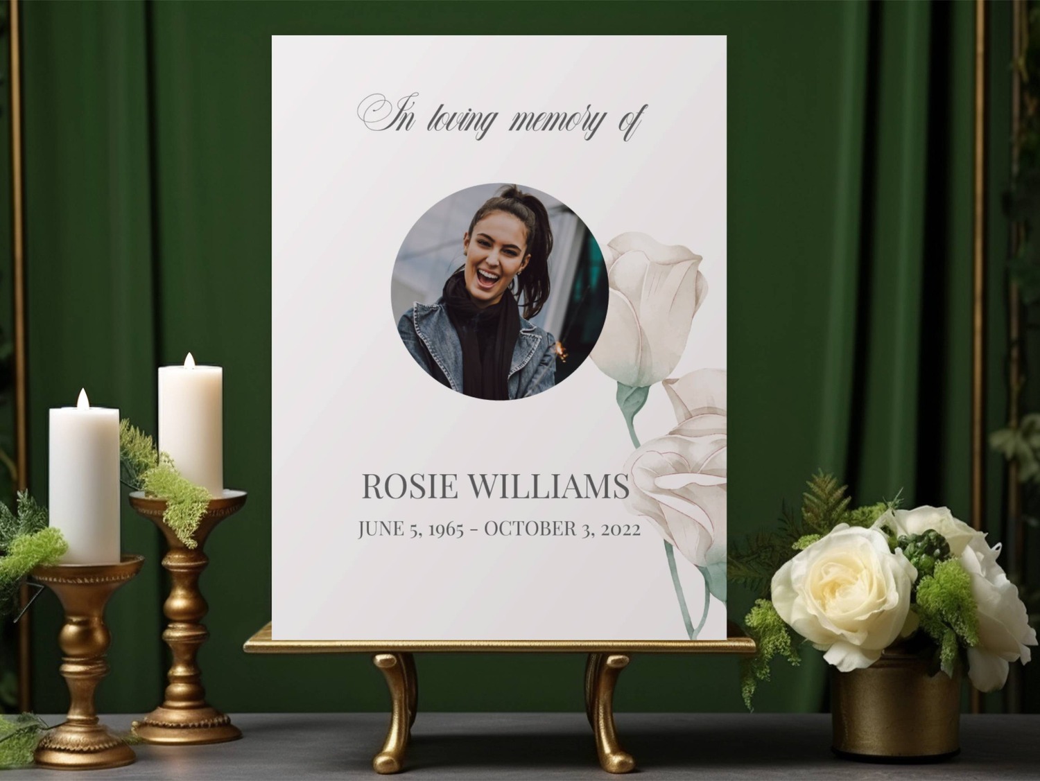 Whether used as a memory board for a funeral, a photo memorial board, or a photo poster for a celebration of life, this design creates a stunning focal point for guests to reflect and remember.