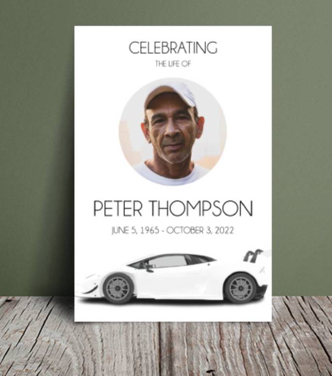 The editable features allow for tailoring the content to align with the individual's distinctive personality and the preferences of their loved ones. Additionally, the template offers customization options, facilitating the seamless integration of personal elements such as cherished car-related photographs, heartfelt text expressing the individual's passion for travel, or meaningful quotes that evoke the symbolism of life's journey. This feature empowers the creation of a truly unique and deeply heartfelt tribute. Through the ability to customize, one can authentically reflect the departed individual's unique qualities and cherished memories, all while embracing the White sports car as a potent and enduring metaphor for life's journey.