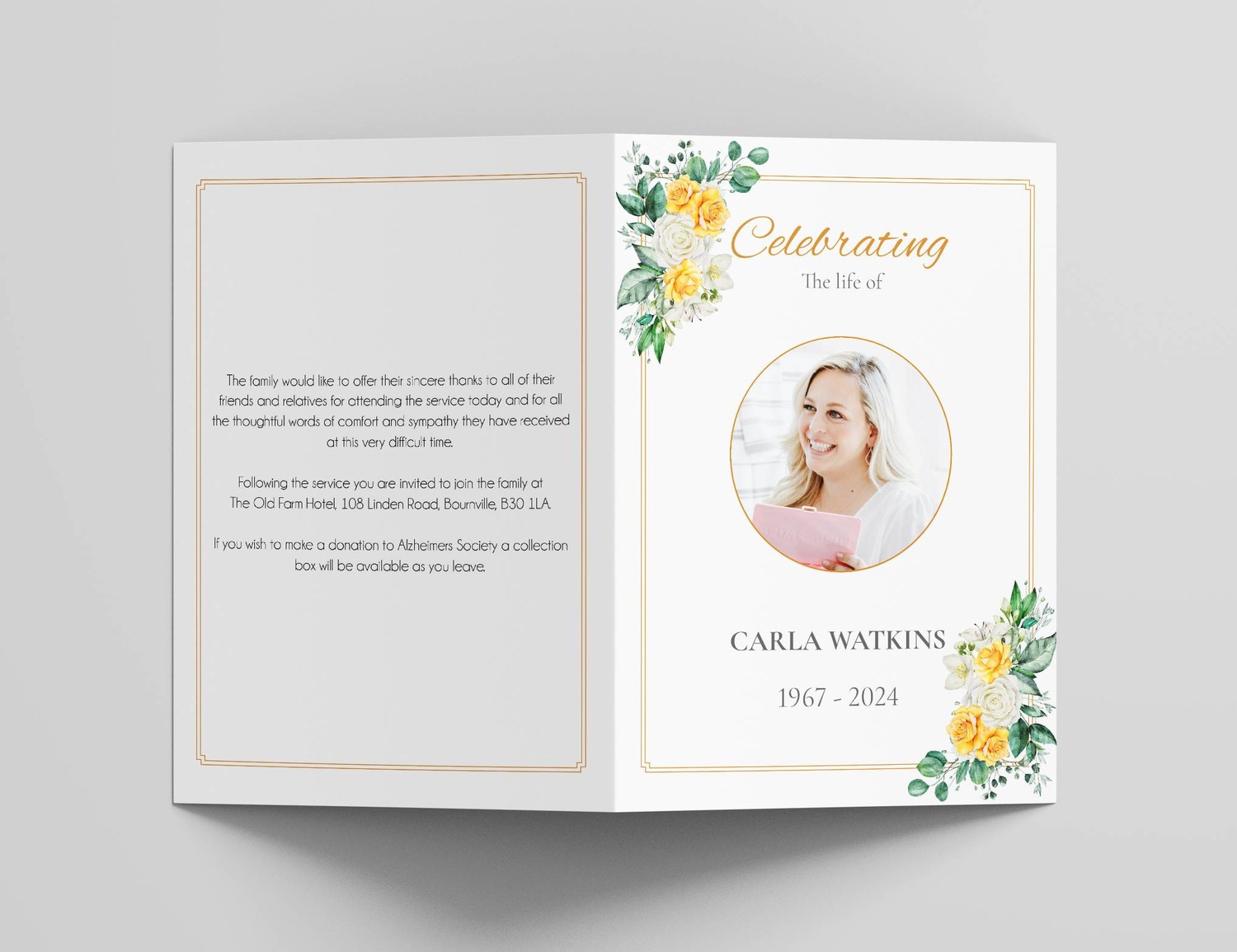 Yellow and white roses funeral order of service 162