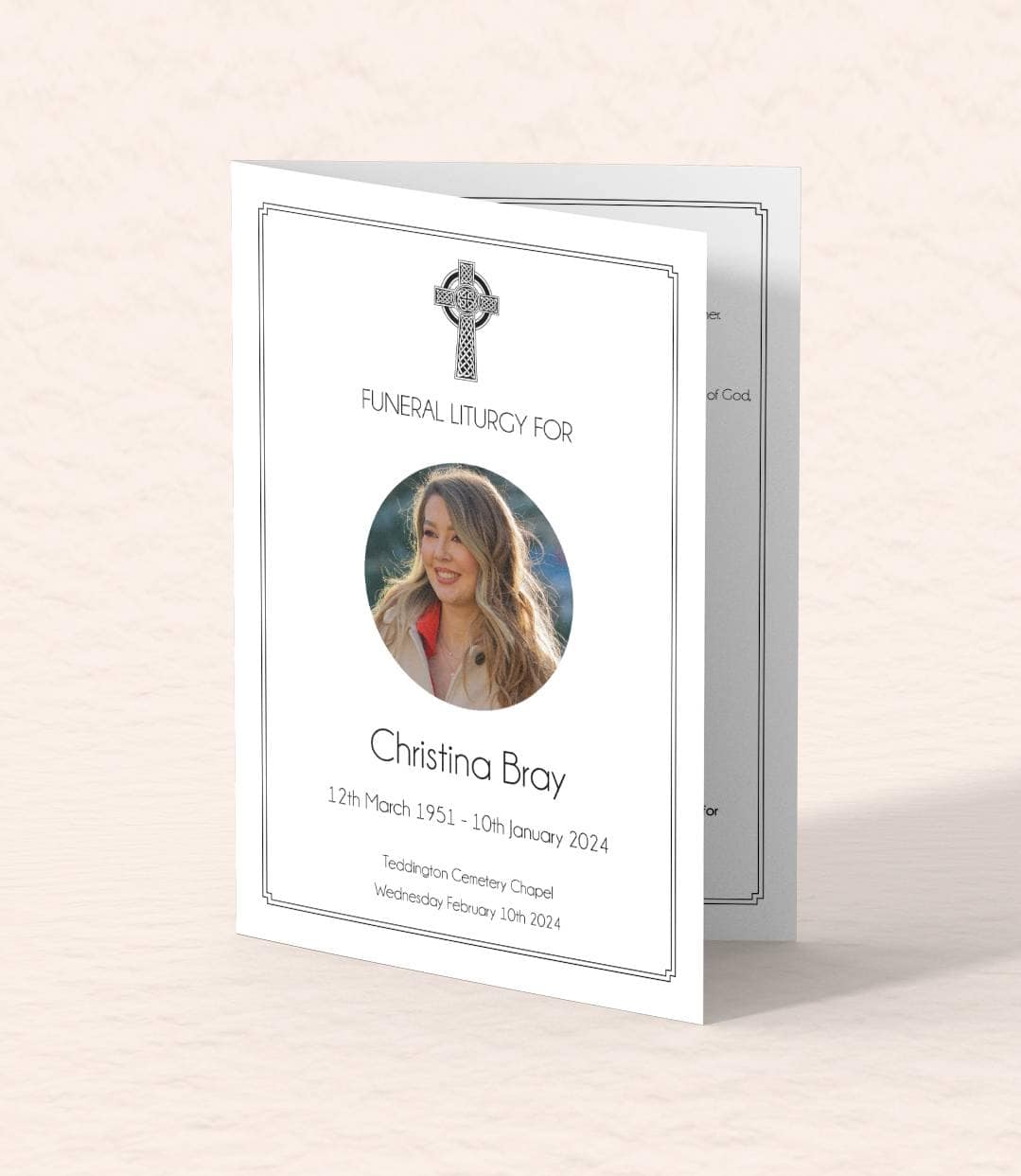 Classic designs age beautifully. In twenty years, they’ll still look dignified – not dated. Families often keep funeral booklets in memory boxes, alongside photos and letters. If this long-term value matters to you, a classic layout on good paper is usually a safe choice.